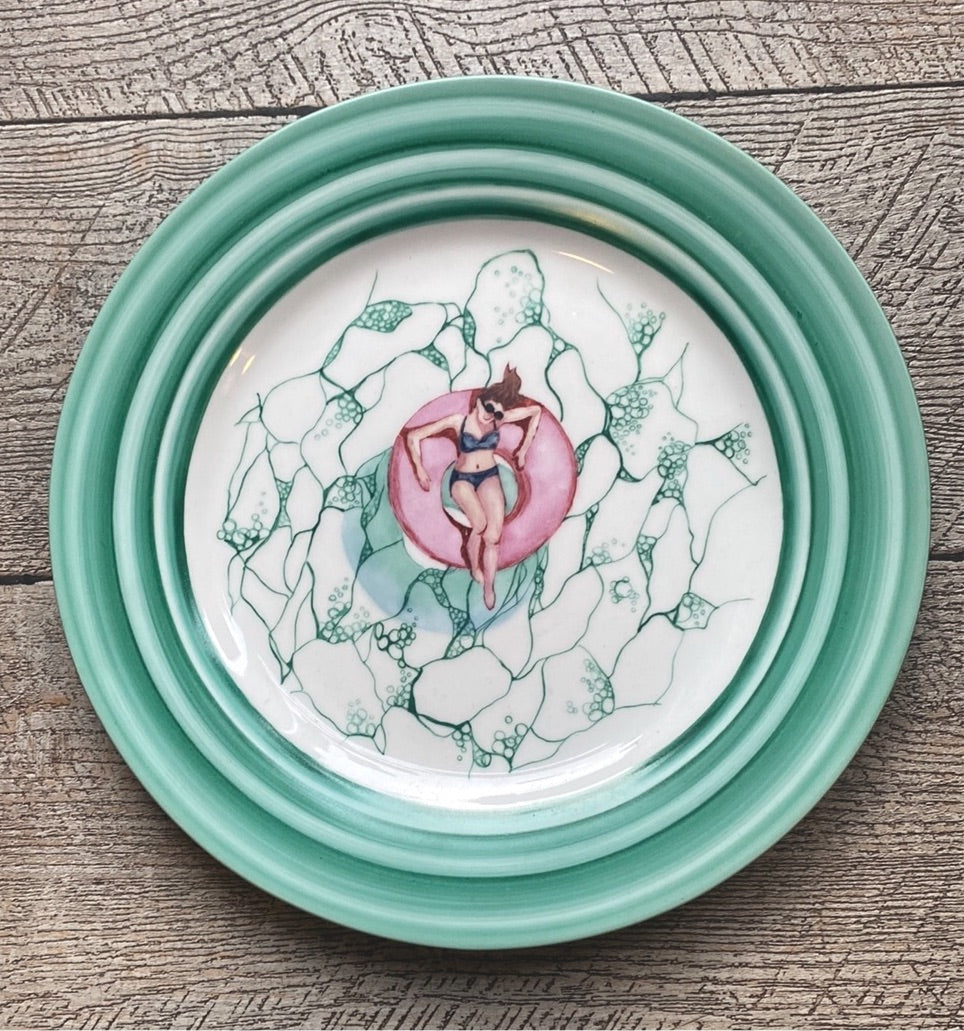 Piatto in porcellana dipinto a mano. Lavabile in lavastoviglie.